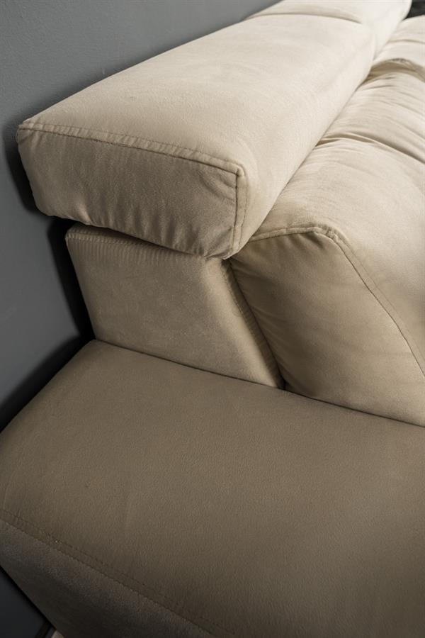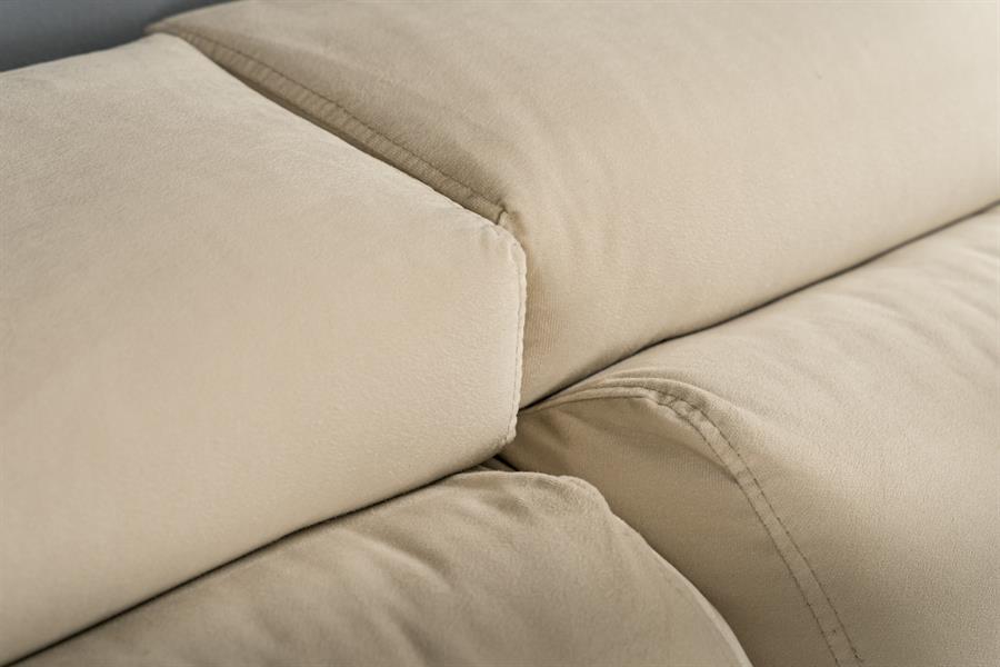 ASIENTO: Placa de espuma soft de 28 kg de densidad de 15 cm de altura con efecto memoria recobrando siempre su forma original Respaldo con placa de espuma hiper soft de 26 kg de densidad efecto memoria funda con cierre para su limpieza Cabezal reclinable