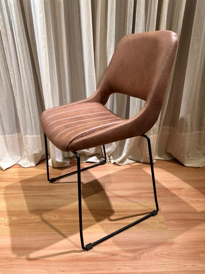 Silla tapizada base metálica pintada.