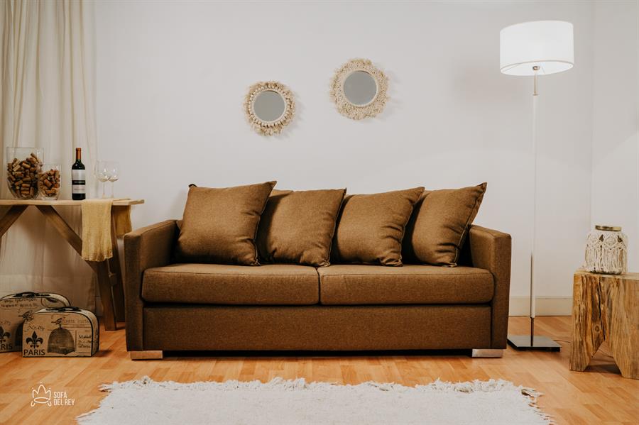 Placa de espuma super soft de 15 cm de altura envuelto con doble vuelta de guata con efecto memoria recobrando siempre su forma original. Los almohadones del respaldo rellenos con vellón siliconado.